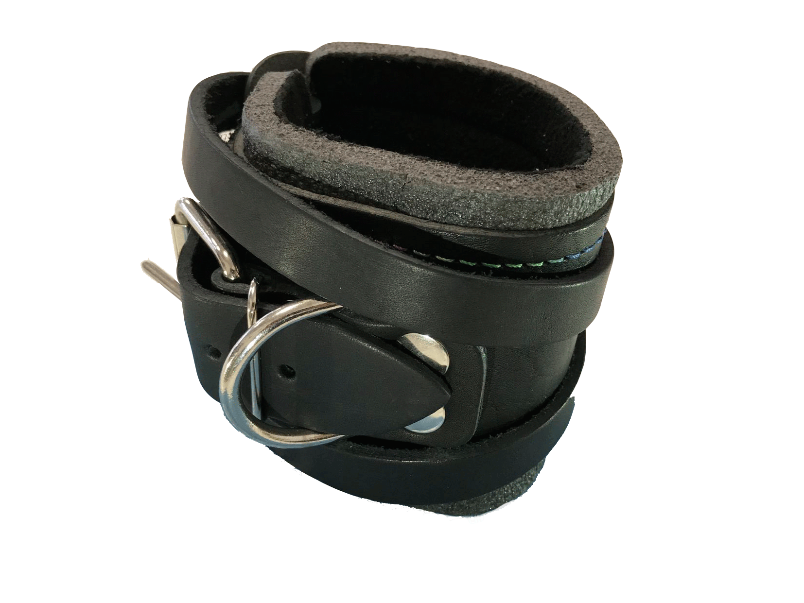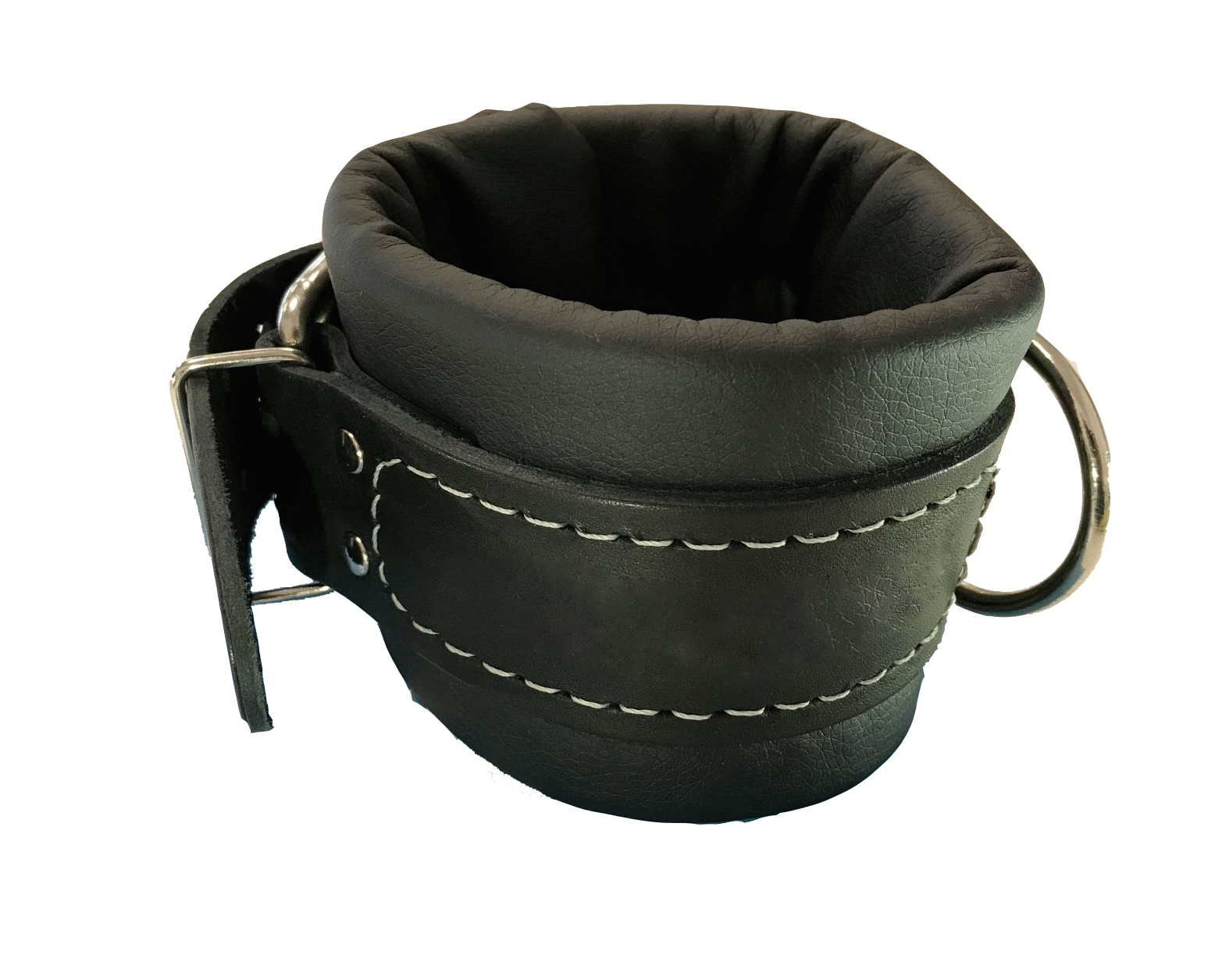 Мягкая, комфортная, надежная и удобная усиленная широкая 11 см. манжета с карабином из трех слоёв натуральной кожи высочайшего качества с карабином с регулируемым обхватом голени