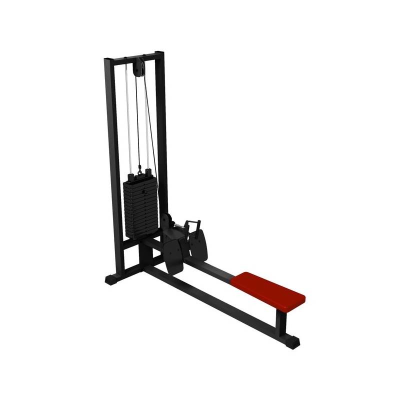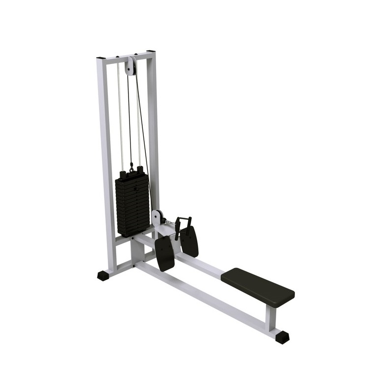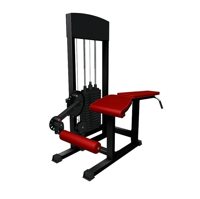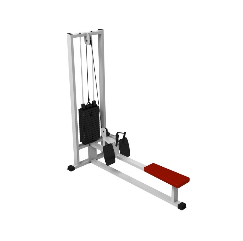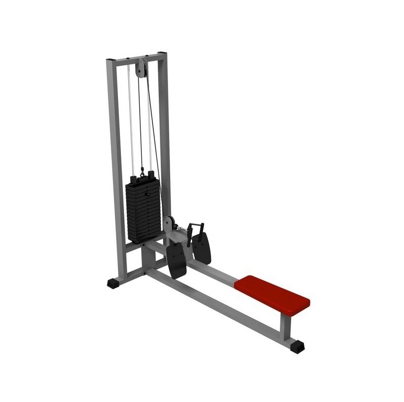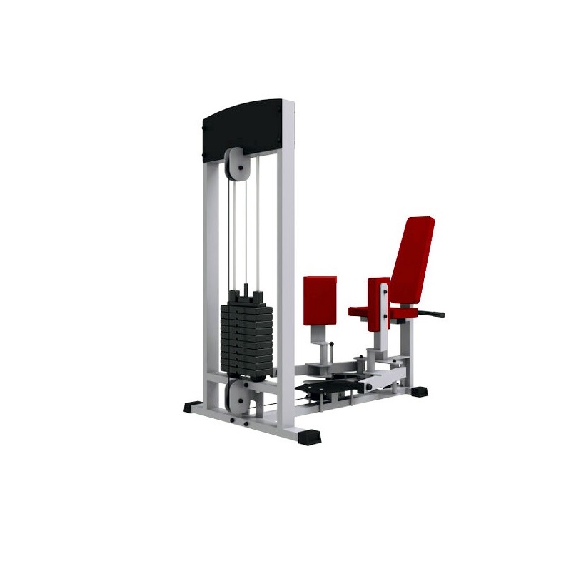 Профиль несущей конструкции 80х40х3 (мм). Тренажер окрашивается порошковой краской. Сидение изготовлено из многослойной фанеры (20 мм), в качестве наполнителя и обивки используется двухслойный пенополиуретан, устойчивый к усадке и высококачественная искусственная кожа. Регулировка сиденья и амплитуды движения позволяет заниматься на тренажере людям с разными ростовыми характеристиками. Грузоблочный стек тренажера состоит из 15 металлических обрезиненных плит весом по 6кг и направляющих. Изменение нагрузки происходит при помощи селектора (фиксатора). Для приведения в движение грузов используется трос 6 мм в пвх оплетке с усилием на разрыв 500 кг с макс. Нагрузкой – 800кг. Скрытая система подшипников обеспечивает плавность хода и шумопоглащение. Тренажер оснащен амортизирующими подпятниками, не требующими крепления к полу.