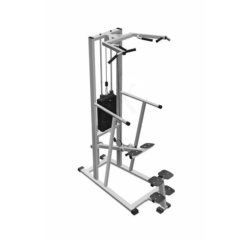 Стек грузоблока состоит из обрезиненных грузов по 6 кг и направляющей. Нагрузка тренажера изменяется с помощью фиксатора. Груза приводятся в движения с помощью троса диаметром 6 мм в оболочке ПВХ с усилием на разрыв 550 кг и с максимальной нагрузкой – 850кг. Комфортную и бесшумную работу на тренажере обеспечивают подшипники. Ножки тренажера снабжены резиновыми подпятниками не требующими крепления к полу.