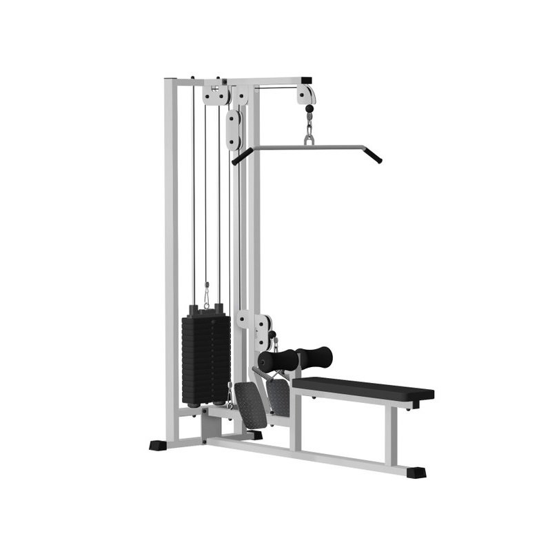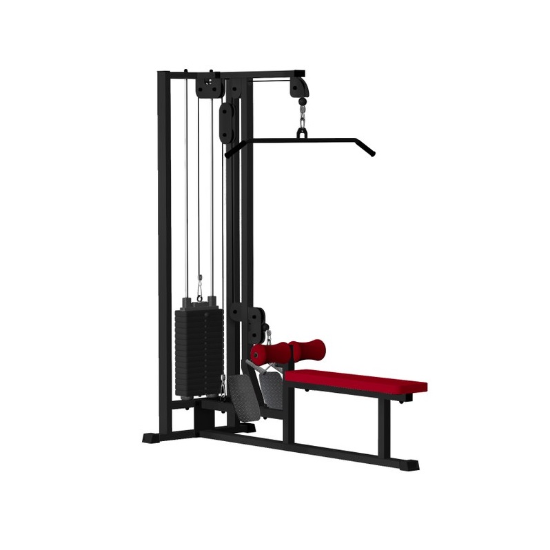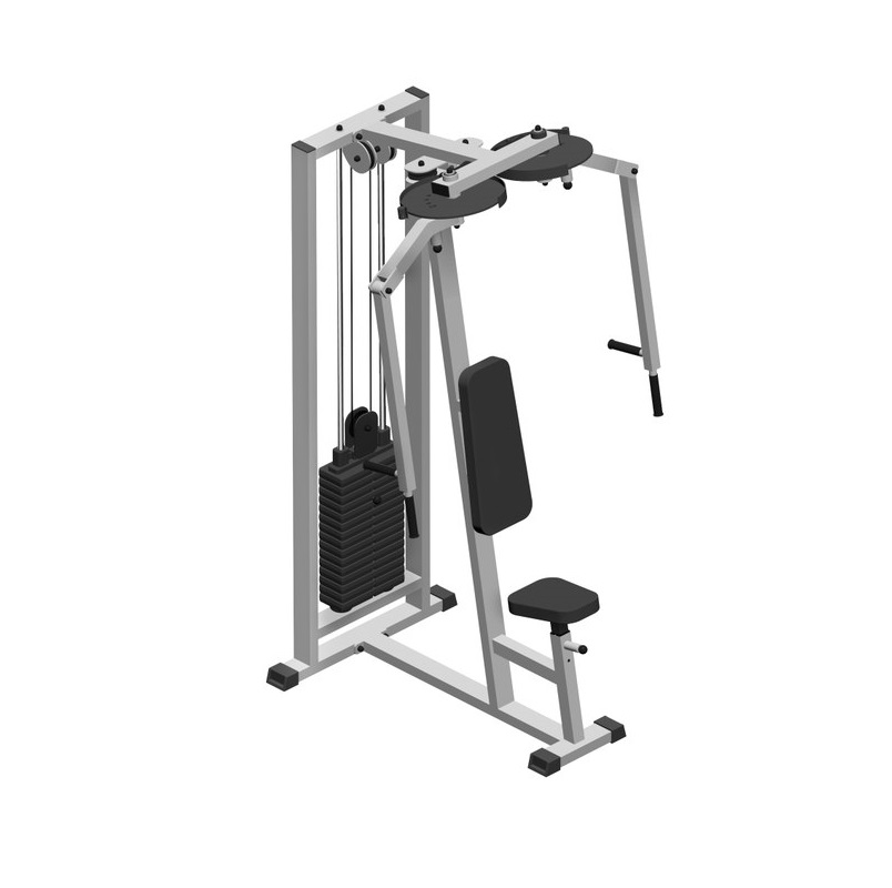 Стек грузоблока состоит из обрезиненных грузов по 6 кг и направляющей. Нагрузка тренажера изменяется с помощью фиксатора. Груза приводятся в движения с помощью троса диаметром 6 мм в оболочке ПВХ с усилием на разрыв 550 кг и с максимальной нагрузкой – 850кг. Комфортную и бесшумную работу на тренажере обеспечивают подшипники. Ножки тренажера снабжены резиновыми подпятниками не требующими крепления к полу.
