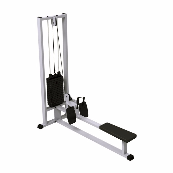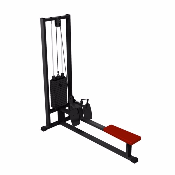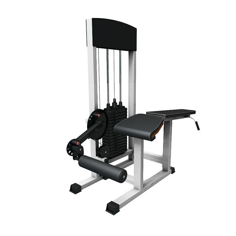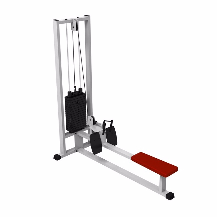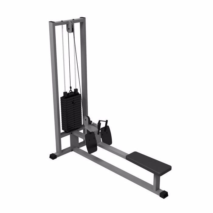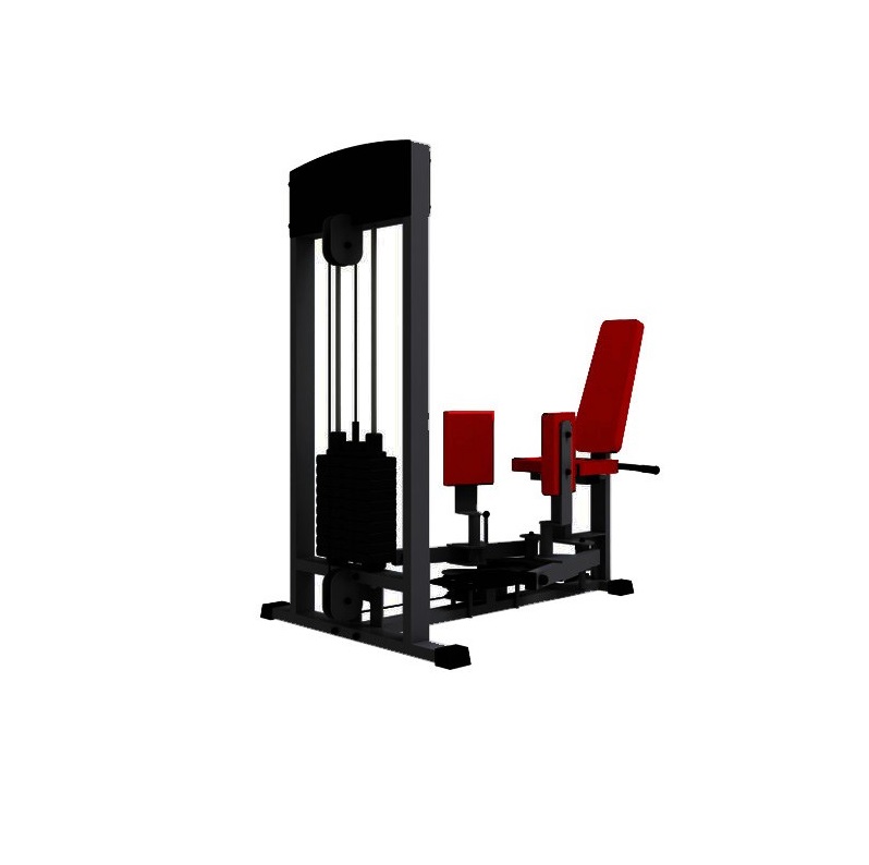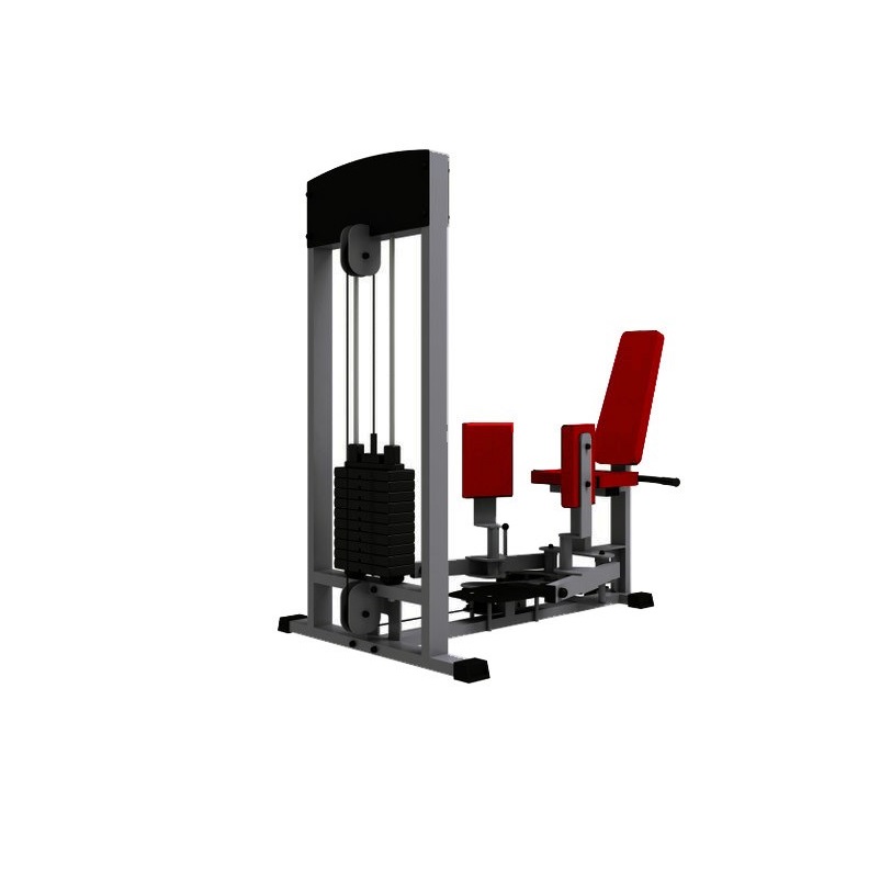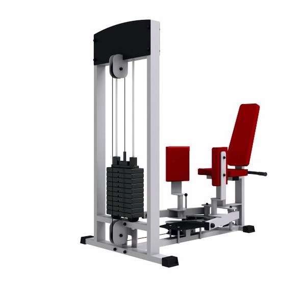 Профиль несущей конструкции 80х40х3 (мм). Тренажер окрашивается порошковой краской. Сидение изготовлено из многослойной фанеры (20 мм), в качестве наполнителя и обивки используется двухслойный пенополиуретан, устойчивый к усадке и высококачественная искусственная кожа. Регулировка сиденья и амплитуды движения позволяет заниматься на тренажере людям с разными ростовыми характеристиками. Грузоблочный стек тренажера состоит из 15 металлических обрезиненных плит весом по 6кг и направляющих. Изменение нагрузки происходит при помощи селектора (фиксатора). Для приведения в движение грузов используется трос 6 мм в пвх оплетке с усилием на разрыв 500 кг с макс. Нагрузкой – 800кг. Скрытая система подшипников обеспечивает плавность хода и шумопоглащение. Тренажер оснащен амортизирующими подпятниками, не требующими крепления к полу.